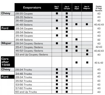 Vintage Air suggests these evaporator kits for universal programs
